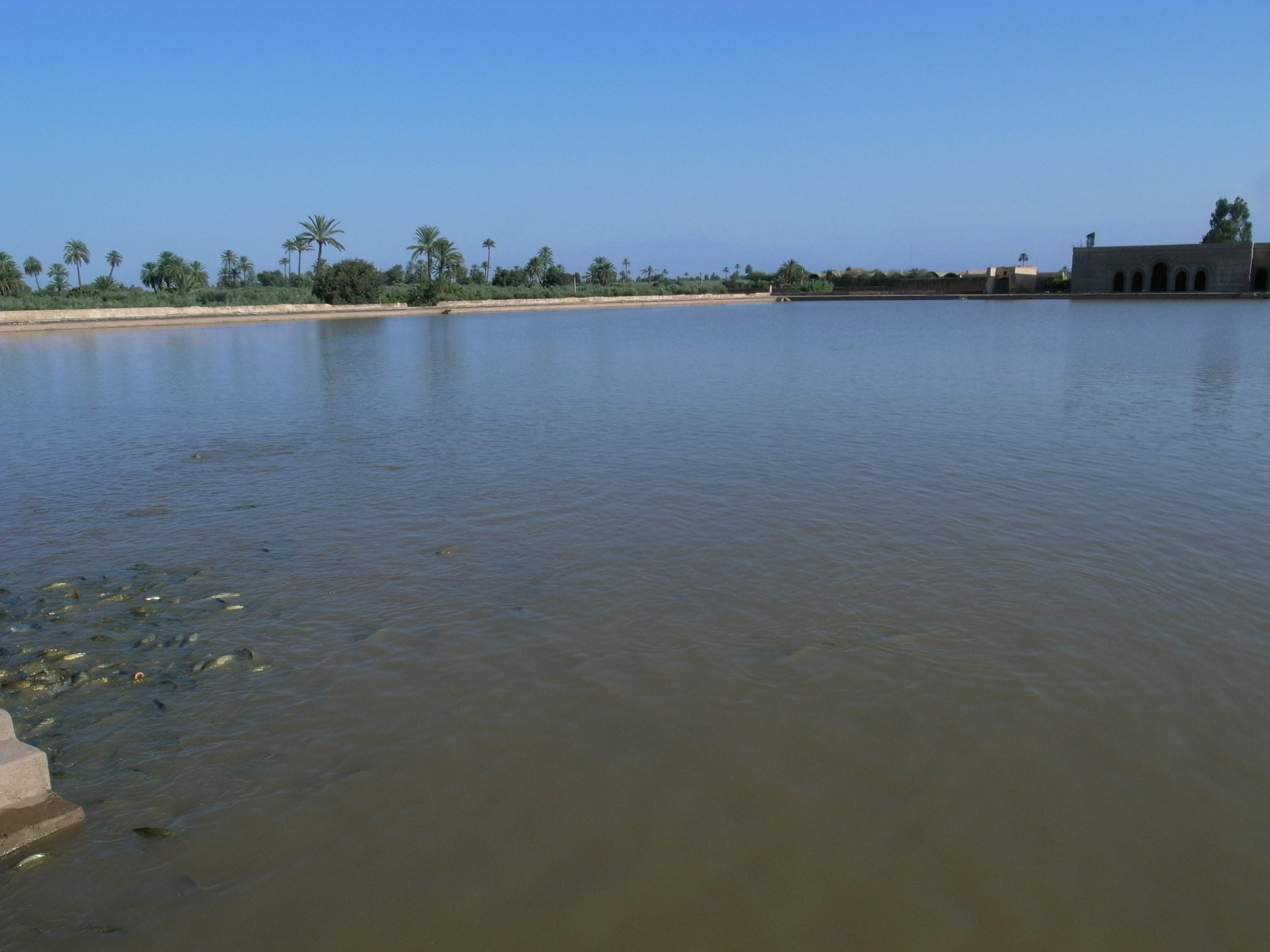 Efectivamente, Marrakech es una ciudad que ha destacado desde el periodo almorávide por la presencia de huertos en su periferia, aspecto que ha sido posible gracias al aprovechamiento intensivo de los recursos hídricos. Así, a finales del siglo XII existen testimonios de numerosos basātīn y ŷannāt de grandes dimensiones que en ocasiones son referidos como buḥayra (lago), término que hace referencia a la existencia de un gran albercón (buḥayra, birka o ṣahrīŷ) en su interior y que, por extensión, pasó a referirse a toda la finca. De tal modo, parece que la disposición de un enorme depósito en el interior de los huertos pasó a constituir un patrón bastante frecuente en las llanuras que rodean la ciudad, siendo esta una solución práctica ante la necesidad de acumular agua con la que garantizar la supervivencia de los cultivos en un medio semi-árido.
