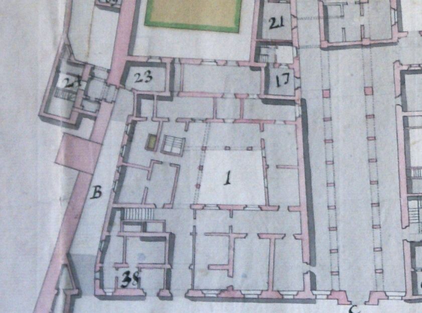En el costado de levante, donde vemos la puerta moderna, existe un arco que en el plano de hacia 1608 salía a la ciudad de forma directa, aunque ahora da paso a una vivienda, cosa que viene sucediendo desde 1872, o antes, pues así aparece en un plano dibujado entonces por el arquitecto Joaquín Fernández; probablemente allí se iniciaba la calle y barrio del Atambor, que hoy son la plaza de Doña Elvira y la calle de Rodrigo Caro. Recordemos que aún a mediados del siglo XX este postigo y sus accesos eran de uso restringido a partir de cierta hora de la tarde y hasta la mañana siguiente, como lo fueron las puertas de la ciudad hasta bien entrado el siglo XIX.