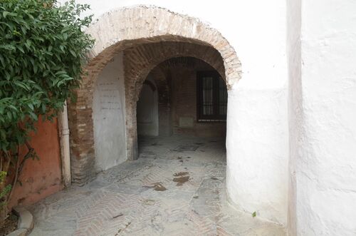 La puerta exterior está formada por dos arcos de 2,05 m de luz, dispuestos en paralelo dejando la distancia justa para que los portones que cerraban la puerta, cuando esta estaba abierta, quedaran alojados entre sus jambas. Este espacio se cubre con una bóveda rebajada dispuesta en la misma dirección que los arcos. En la cara interna del arco exterior se conservan las gorroneras de piedra en donde giraban los portones. El arco exterior era de medio punto, aunque se encuentra muy deformado por la erosión causada por la circulación que ha hecho desaparecer prácticamente su jamba derecha. Tras atravesar la puerta se accede a un espacio cuadrado de 2,64 m de lado cubierto con una bóveda de ocho gajos apoyada en una pequeña cornisa con forma de nacela y planta octogonal. El paso de la planta cuadrada al ochavo se realiza mediante arcos rebajados dispuestos diagonalmente que forman los frentes de trompas con forma de medias bóvedas de arista. La puerta existente en el lado derecho de este espacio es sin duda moderna, pero la ventana frontal es un arco por el que se accedía a una habitación de dimensión similar al espacio cupuliforme, que estaría destinada a cuerpo de guardia. Lo más reseñable de esta habitación es la forma de su cubrición que se levanta por encima de una pequeña cornisa en nacela que recorre todo el perímetro cuadrado, similar a la de la cúpula del espacio principal. Está formada por cuatro arcos que atajan los rincones que apoyan en el centro de cada lado y determinan un cuadrado central dispuesto en diagonal y cuatro triángulos en las esquinas. Estos triángulos se cierran con medias bóvedas de arista mientras el cuadrado central lo hace con una entera. Esta singular disposición es semejante a la que existe en la zona central de la sala templada del hammam del alcázar de Jerez de la Frontera, dato que sustentaría la datación almohade de esta obra.