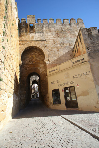 Antes de seguir adelante con el estudio de los elementos medievales de este Alcázar de Abajo, o de la puerta de Sevilla, conviene enfatizar que, durante cerca de un milenio, los sistemas defensivos clásicos fueron más que suficientes para esta zona de la ciudad, incluso cuando se perdieron o inutilizaron algunos de sus elementos; pero las circunstancias políticas y militares que siguieron a la caída del estado omeya cordobés transformaron radicalmente las murallas de las ciudades andalusíes, produciéndose un cierto renacimiento de la arquitectura militar, como no podía ser menos si se tiene en cuenta el creciente poder ofensivo y alcance de los ejércitos cristianos; este impulso renovador, dado por los almorávides y fundamentalmente por los almohades, fue suficiente hasta fines del siglo XV. La procedencia de los nuevos sistemas defensivos parece que debe buscarse en el Islam oriental, heredero de los métodos clásicos y tardo antiguos por vía directa; la Península Ibérica se benefició de estos conocimientos por una doble vía, ya que los propios musulmanes los transmitieron a través del Norte de África y los cruzados los llevaron directamente a la Europa cristiana, y de allí pasaron a los reinos de sus correligionarios peninsulares, en un proceso ligeramente posterior y de penetración seguramente más lenta. En este contexto los elementos de la Puerta de Sevilla constituyen un hito básico, conformado en dos fases distintas, sucesivas y complementarias. La primera, en la que se erigió el arco de herradura con sus hojas de puerta, puede llevarse a los comienzos del siglo X mientras la segunda, es decir el resto, parece pertenecer a un momento posterior, con decoración andalusí moderna y evolucionada, seguramente de época almohade. Si esta datación es correcta, la Puerta de Sevilla sería un nexo de unión entre los ejemplares africanos del siglo anterior y los casos andaluces, tanto nazaríes como mudéjares o góticos, de las centurias siguientes.